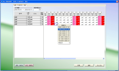 1日に、勤務時間帯をセットしました。