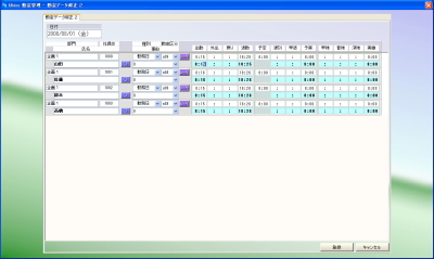 1日に、勤務時間帯をセットしました。